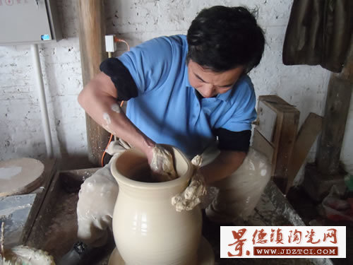 正在工棚忙活的周師傅看到有人來(lái)參觀,當(dāng)即就為記者表演了拉坯絕活,為了讓記者看清楚,周師傅更是施展各種拉坯技巧,只見(jiàn)圓柱狀的坯體在他靈巧的技藝下,一會(huì)成瓶狀,一會(huì)又成了罐狀。