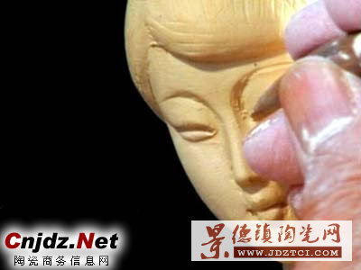 稍微晾曬之后,將捏塑好的肢體部件,通過(guò)泥漿來(lái)粘合拼接,塑造出瓷塑仕女的大概輪廓。然后,要憑借著手中的雕塑刀,對(duì)瓷塑進(jìn)行細(xì)部的刻畫(huà),雕塑中:刮、削、貼、挑、壓、抹等技法,主要是靠塑刀來(lái)完成。