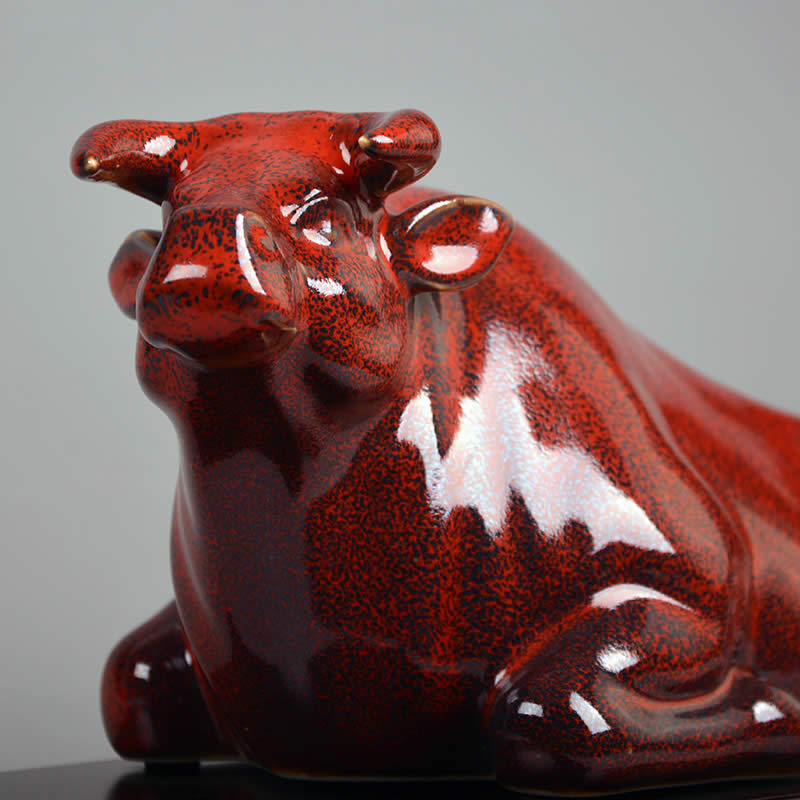 劉少平《開運(yùn)紅牛》生肖牛陶瓷雕塑 牛吉祥物擺件工藝品辦公室桌面玄關(guān)新年禮品